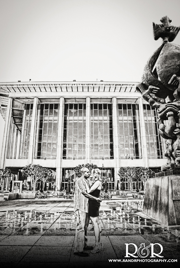 Casey really loved the idea of going to downtown Los Angeles to capture her engagement portraits with honey Mauricio-we explained that some buildings could be strict about permits-she was determined and did all the leg work and got permissions from the spots she wanted to go to – last on her list was the light installation outside LACMA on Wilshire Blvd. in the Miracle Mile District. Casey’s day started with expert hair and makeup by Samantha Singer- and wow! what a knockout she was!