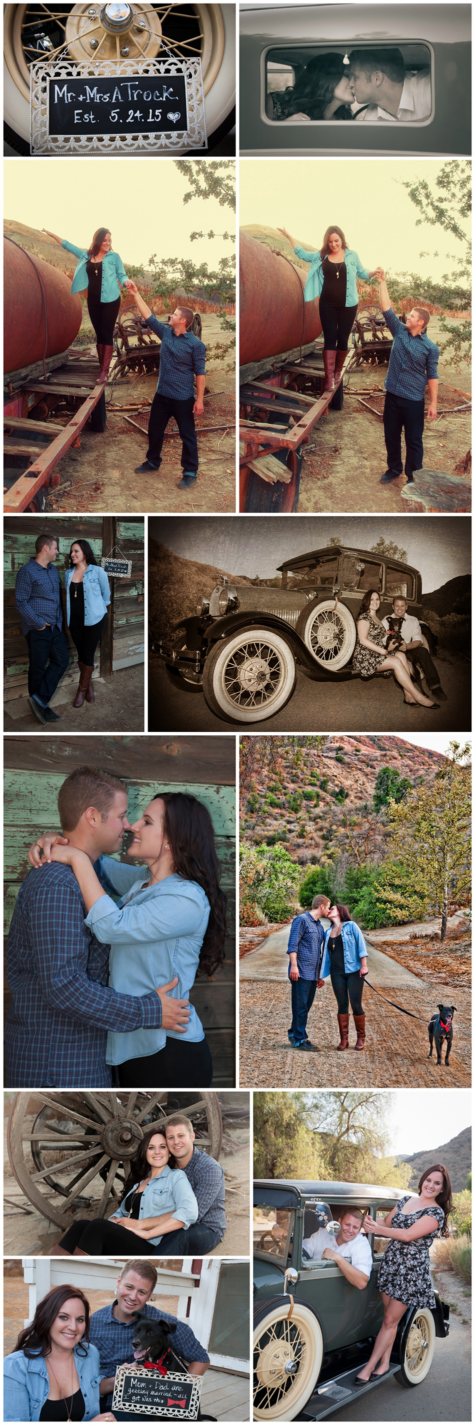 Their engagement session at Mentryville was a blast! Andrew’s parents brought along Paul’s vintage ’29 Ford Model A as the ultimate prop, and they also helped protect the adorable pup from a waiting mountain lion. (What a story!)